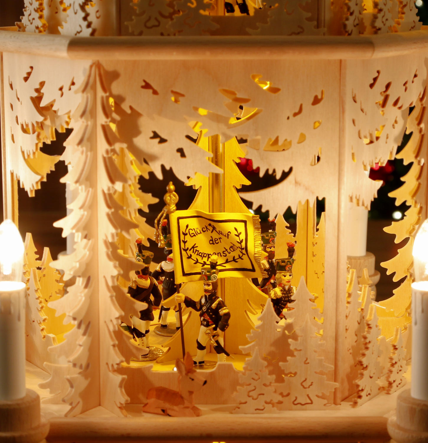 Elektrische Weihnachtspyramide original aus dem Erzgebirge mit Diorama im Unterbau Modell: Zinn-Bergleute