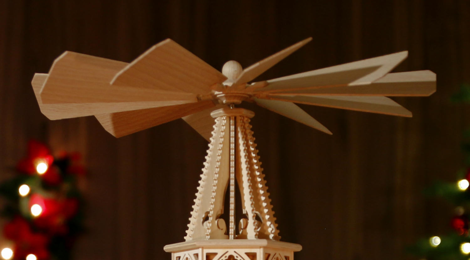 und bestückt aus dem GRÖDNERTAL in Südtirol. In dieser Tilgner-Pyramide haben wir viele Elemente der und filigraner Ausführung dargestellt. Sie reichen vom Spitzbogenfenster mit typischen Drei- und Vierpässen und schmückenden Ornamenten über die sich wiederfindenden Vierpässe die Strebepfeiler und Strebebögen sowie die im Unterbau und bis hin zur typisch schlanken Form der gesamten Pyramide. Neben jedem verzierten "Fenster-Element" gestattet ein stilisiertes offenes Portal weiten Einblick auf die prachtvollen und bunt bemalten original DOLFI-Skulpturen von Bildhauermeistern des GRÖDNER TALS (mit Echtheitszertifikat) Die Figuren sind auf der Pyramide fest verleimt. - Heilige Familie im 2. Stock, - Heilige Drei Könige aus dem Morgenland im 1. Stock und - 2 niedliche Schäfchen (d.h. 1 Schäfchen und 1 Widder) im 3. Stock. Diese Pyramide ist mit 6 Teelichthaltern + 6 Adaptern für Kerzen ausgestattet. Technische Daten der Tilgner-Pyramide: Gesamthöhe: ca. 53 cm Etagen: Unterbau + 3 Etagen, 6-eckig Flügelraddurchmesser: ca. 33 cm Die aufwendige Verpackung stellt sicher, dass auf dem Transportweg nichts kaputt geht. - sofort lieferbar - Zurück zum Online-Shop | |||||||||||