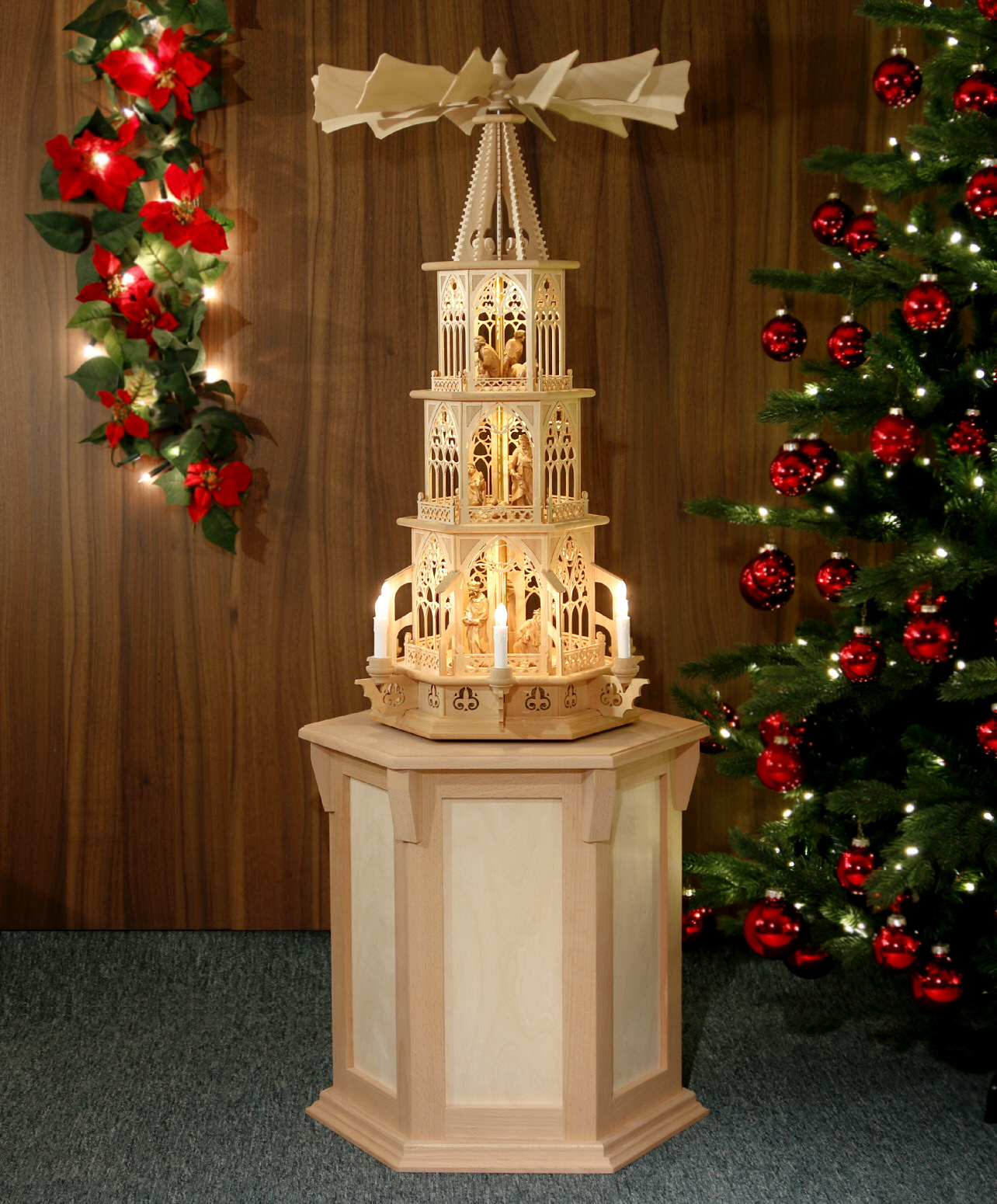 Podest aus dem Erzgebirge für gotische Tilgner-Pyramiden mit einer Höhe von 83 cm