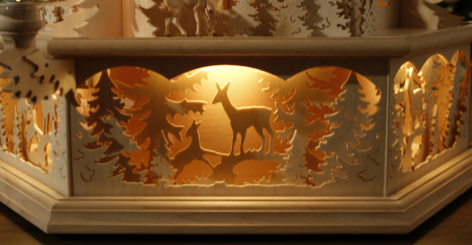 "Waldidyll" Modell: Bergmann - Grödner Holzschnitzerei Neuheit: Innenbeleuchtete Etagen! mit Motor und 9 elektrischen Kerzen